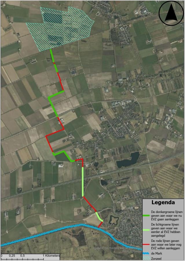 De afgelopen jaren zijn er gronden voor de EVZ Terheijden - Zonzeel verworven. Het is echter nog geen aaneengesloten traject. De nieuwe EVZ loopt van de Mark naar Zonzeel en maakt daarmee een verbinding mogelijk tussen de Mark en het Hollands Diep, via de EVZ ‘Gat van Ham’.