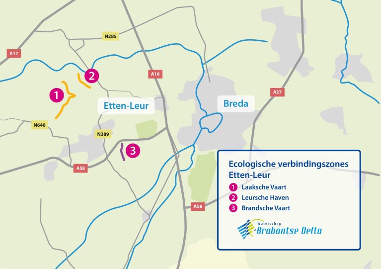 In Etten-Leur worden 3 ecologische verbindingszones aangelegd. Op 27 november 2025 is er een informatiebijeenkomst geweest bij Jachthaven de Turfvaart. De trajecten staan op het kaartje hiernaast.