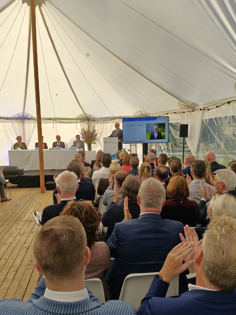 Joris Bengevoord start met veel energie en een frisse blik. In zijn eerste toespraak benadrukte hij het belang van verbinden: “Ik wil de samenleving nog nadrukkelijker betrekken bij het werk van het waterschap. Het werk gebeurt vaak letterlijk uit het zicht – achter hekken, onder water, in installaties – maar het is van levensbelang. De omstandigheden waaronder het waterschapswerk plaatsvindt zijn steeds complexer. De gevolgen van klimaatverandering stellen ons watersysteem op de proef. Maar naast meer ruimte voor water, is er ook meer ruimte nodig voor huizen, bedrijven, natuur en de energietransitie. En iedereen die hierbij betrokken is laat zich horen én wil gehoord worden. Deze complexiteit vraagt om samenwerking. Als waterschap kunnen we het niet meer alleen. En ook andere partijen kunnen het niet meer alleen. De uitdagingen van onze tijd vragen om meer verbinding.”