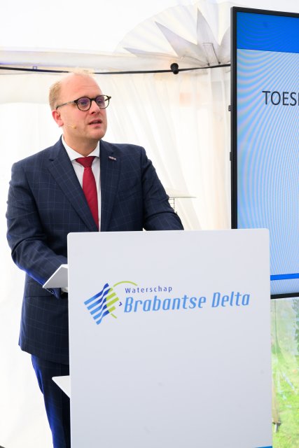 Joris Bengevoord is benoemd als dijkgraaf van waterschap Brabantse Delta. Vandaag heeft hij de eed afgelegd voor de Commissaris van de Koning, Ina Adema, in een bijzondere vergadering van het algemeen bestuur. Met zijn 41 jaar is hij de jongste dijkgraaf van Nederland. Een nieuw gezicht in de wereld van water, maar Joris komt niet zonder ervaring. Vanuit zijn bestuurlijke achtergrond weet hij hoe belangrijk het is om te luisteren, te verbinden en samen te werken aan oplossingen die ertoe doen. Na zijn installatie werd al snel duidelijk dat het met die verbindende rol wel goed zit. In een sfeervol gezelschap van familie en bestuurders van gemeenten en waterschappen en zijn vorige werkomgeving, gaf hij er al volop blijk van.