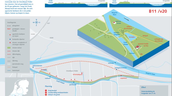Op diverse plaatsen in Nederland worden rivieren verlegd of verbreed. Voorbeeld van een project waar water de ruimte krijgt,De laatste jaren past Brabantse Delta een andere tactiek toe om overstroming te voorkomen: we geven water de ruimte. Het waterschap legt waterbergingsgebieden aan, die water bij hevige regenval vastgehouden en daarmee voorkomen dat straten of landbouwgronden onderlopen. Ook krijgen wateren meer ruimte door het aanleggen van meanders en ecologische verbindingszones.